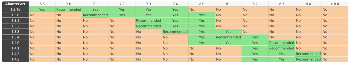 Source info: https://abantecart.atlassian.net/wiki/spaces/AD/pages/3768390/AbanteCart+System+Requirements.